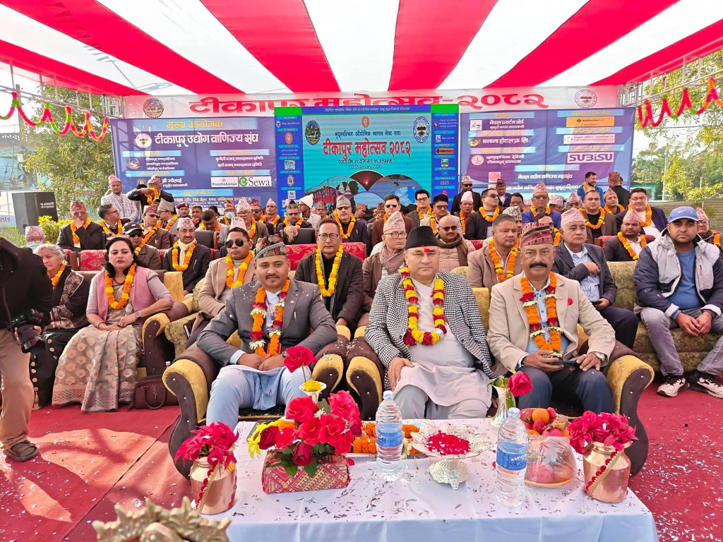टीकापुर, २९ पुस । कैलालीको टिकापुरमा आयोजित टिकापुर महोत्सव २०८२ आज भव्यरूपमा उद्घाटन गरिएको छ। टिकापुर उद्योग वाणिज्य संघकाे आयोजनामा सुरु भएको महोत्सवले स्थानीय उद्योग, व्यापार विस्तार तथा पर्यटन प्रवर्द्धनमा सकारात्मक योगदान गर्ने अपेक्षा गरिएको छ।