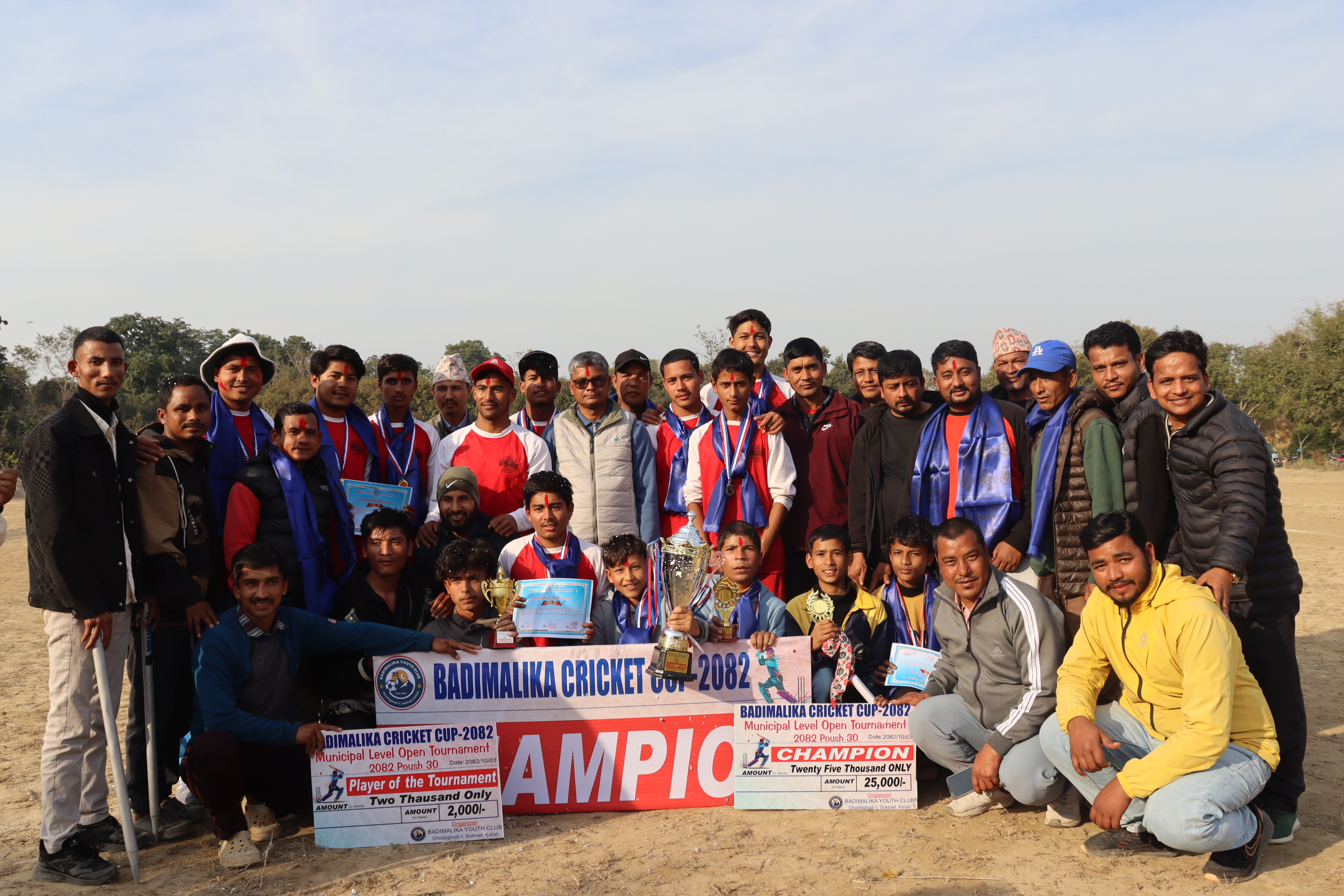 समापन तथा पुरस्कार वितरण कार्यक्रम बडिमालिका युथ क्लबका अध्यक्ष नरेश जंग शाहीको सभापतित्वमा सम्पन्न भयो। कार्यक्रममा प्रमुख अतिथि घोडाघोडी नगरपालिकाका मेयर खडक बहादुर रावत, विशिष्ट अतिथि वडा नं. १ का वडा अध्यक्ष घनश्याम ओझा सहित अन्य सम्माननीय अतिथि, खेलाडी तथा खेलप्रेमी दर्शकहरूको उल्लेखनीय उपस्थिति थियो।